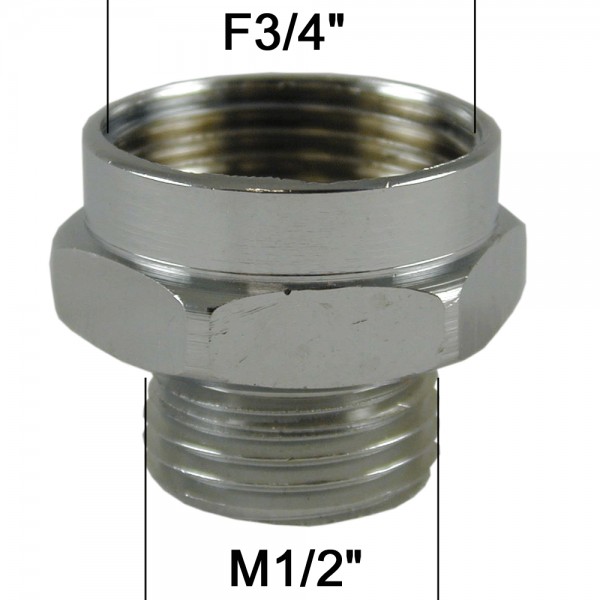 Adaptateur raccord Laiton - Hexagonal - F20x27 (3/4'') à M15x21 (1/2'')